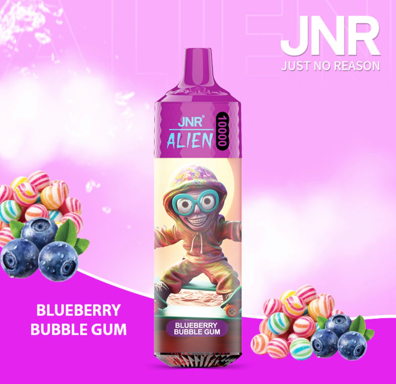JNR Alien Blueberry Bubble Gum: Nostalgic chewing gum flavour with 10,000 puffs