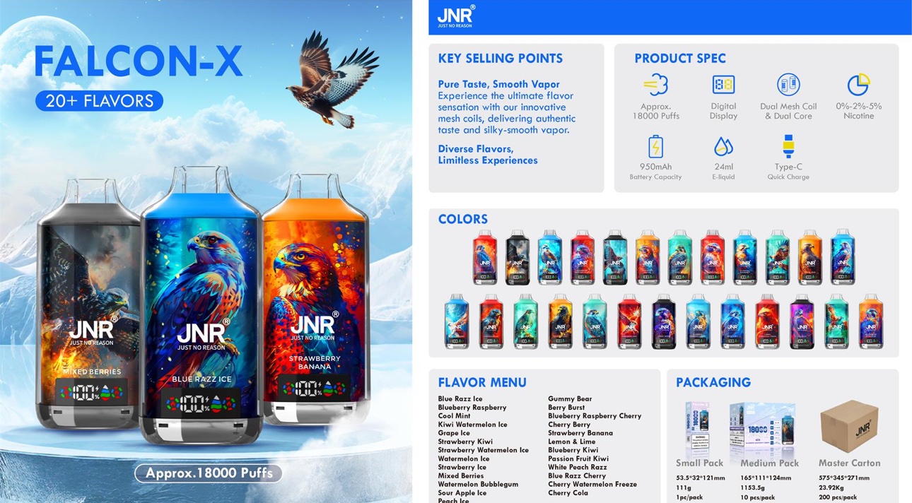 Discover the Puff Jnr 18k with vapesuperstore.eu – the disposable e-cigarette with 18,000 trains24ml capacity and 40+ flavours such as Blue Razz Ice or Cherry Watermelon Freeze. Technical highlights: 950mAh batteryadjustable air flow and 0-5% Nikotin. Original products with fast shipping at Vape Super Store Europe